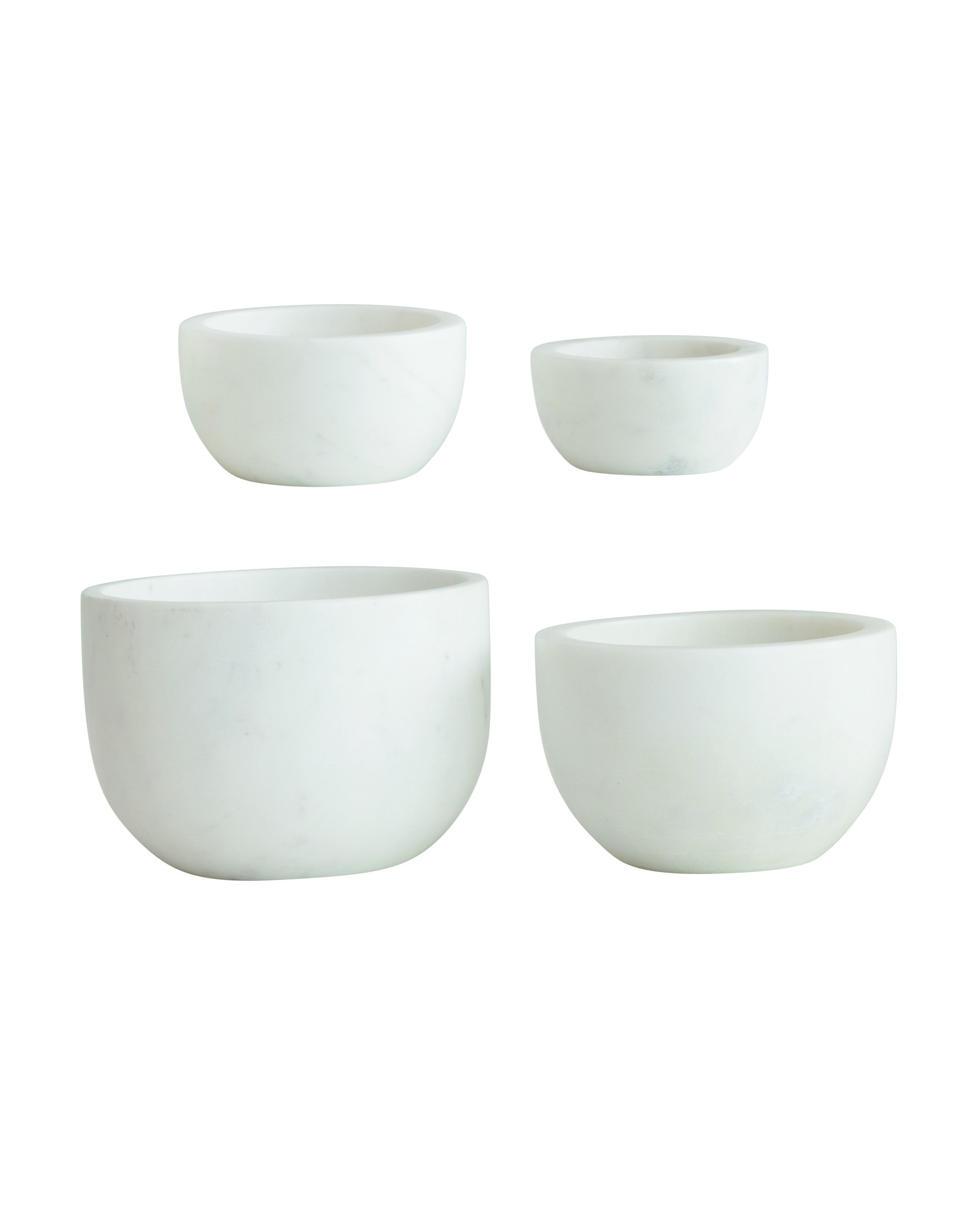 A set of three white ceramic bowls with a smooth, matte finish and a simple, rounded design. The bowls are arranged in a staggered formation, with the largest bowl in the back, the middle bowl slightly in front, and the smallest bowl in the front. The bowls are placed on a white background, and the lighting is soft and... | Website Set of 4 White Marble Bowls | bde7231704fafe242f1418ea3871453f2837987432c4e12f8f9c5411cd9bd55d | 001401446414 | 0 | 0 | 66 | 7 | 0 | 0 | |