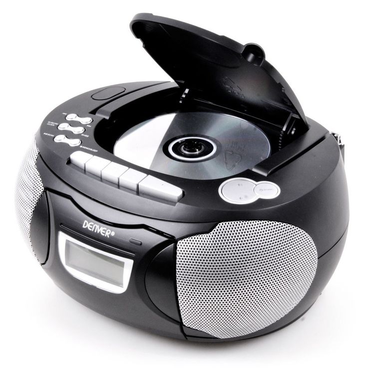 A modern portable CD player with a black and silver design, featuring a digital display, buttons, and a CD tray that is open, revealing a CD inside. The player has a mesh speaker on the front and a carrying handle on top. | Stereo music system CD radio AUX tape boombox black in the set including headphones \xe2\x80\x93 Bild 4 | c845b929d99c440c73a255d733db91b41db074de4087ccf3368e3464c72a7e9c | 001401446383 | 0 | 0 | 42 | 17 | 0 | 0 | |