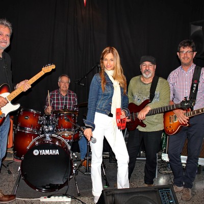 A group of five people is performing on stage. From left to right, there is a man playing an electric guitar, a man playing a drum set, a woman holding a microphone, a man playing an electric guitar, and another man playing a bass guitar. The woman is wearing a white scarf and white pants, and the man on the right is w... | S\xc3\x92NICS, Soul band | e90139b0d30ae819c6824dee7d03a1ded1927d58ebf12be1f8f7e8f69c2b3122 | 001401446366 | 0 | 0 | 84 | 3 | 0 | 0 | |