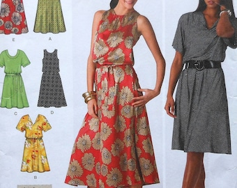 A fashion illustration of a woman wearing a red dress with a floral pattern and a matching belt. The dress has a V-neckline and short sleeves. The woman is standing with her hands on her hips, and there is a patterned fabric swatch on the left side of the image. | Summer Dress Sewing Pattern UNCUT Simplicity 2929 Sizes 20W-28W | 174e6645c87542a783cb1b357a2ee92a2d2a6b737bc96cbc132ae96fa5a56b6f | 001401446514 | 0 | 0 | 50 | 9 | 0 | 0 | |