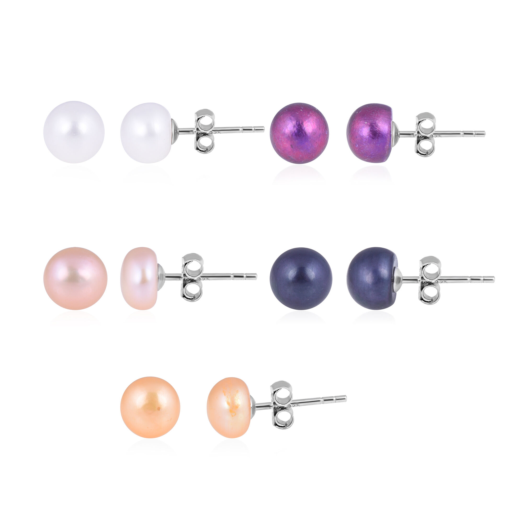 A set of four earrings with different colored pearls, each with a silver earring back. The pearls are arranged in a gradient from light to dark, with the first pearl being light pink, the second pearl being peach, the third pearl being purple, and the fourth pearl being dark purple. | Set of 5 - Freshwater Multi Colour Pearl Ball Stud Earrings (with Push Back) in Sterling Silver | 08d3d396f40d4bf07b216194087113d5b56a6c88633c5ae3c27f42f33310a70d | 001401446482 | 0 | 0 | 50 | 17 | 0 | 0 | |