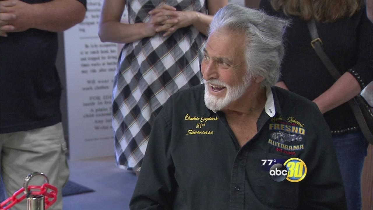 A man with gray hair is wearing a black shirt with a patch that says 'Fresno' and a yellow patch with the number '72' and the letters 'ABC'. He is surrounded by people who are clapping and smiling. | Racing legend honored with 90th birthday celebration and statue at Fresno Fairgrounds | e1e9b74d10d0372ca6680aea2a60b8baa4492966bd492e81a64a8bc9b82daa7b | 001401446754 | 0 | 0 | 38 | 12 | 0 | 0 | |