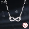 A silver necklace with a delicate infinity symbol pendant is displayed against a dark background with a bokeh effect. The necklace has a chain with a clasp and is accompanied by a red and white circular logo with Chinese characters in the bottom right corner. | 925 Sterling Silver Long Chain Necklace Vintage Crystal Infinity Cross Pendant Necklace for Women Authentic Jewelry Accessories | 3b7392ec8d97b31c19ab48945fb08f8639663fa45b765d4419146b20117f51b4 | 001401446963 | 0 | 0 | 45 | 17 | 0 | 0 | |