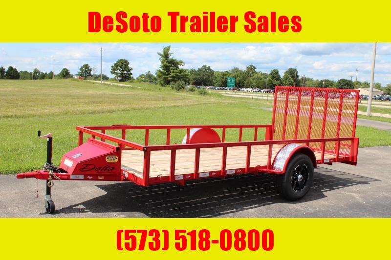 A red trailer with a flatbed and a metal gate is parked on a paved surface next to a grassy field. The trailer has a 'DeSoto Trailer Sales' logo on the side. There are trees and a few cars in the background. | 2020 Delta Manufacturing 135U614 Utility Trailer | 782b952d946fdfe4e5dc4406ff0d75127091cf7330fd4001e5f37c3692e44ae1 | 001401447918 | 0 | 0 | 42 | 6 | 0 | 0 | |