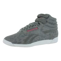 A pair of grey sneakers with a patterned design on the upper part and a white sole. The sneakers have a lace-up front, a tongue with a logo, and a heel counter with a strap and buckle. The shoes are placed against a white background. | Reebok F/S Hi Eden Women's Shoes | e0ee8bffcf9ab3f5662c6b990943ac80f8209edfe118d23bde8903108104ccdb | 001401448388 | 0 | 0 | 45 | 6 | 0 | 0 | |