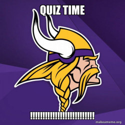 A stylized illustration of a Viking helmet with a long braid of hair coming out of the helmet. The helmet is purple and yellow, and the braid is also purple and yellow. The image has a cartoonish, graphic novel-like appearance. The text 'QUIZ TIME' is written above the helmet, and there are three exclamation marks belo... | Minnesota Vikings | 283342dac01cf5f1a3e3e1fbac13198f2669725883047a1172404b2910f75cb1 | 001401448328 | 0 | 0 | 57 | 2 | 0 | 0 | |