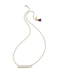 A gold necklace with a smooth, oval pendant and a small, round charm hanging from it. The pendant has a textured surface and the charm is purple with a gold clasp. | Shashi - Blue Nora Necklace - Lyst | fff0da464b5fc0280d12a2ff0bf8dd5b258aa8e4f1f76e76a4c9959ef7d09622 | 001401448450 | 0 | 0 | 31 | 7 | 0 | 0 | |