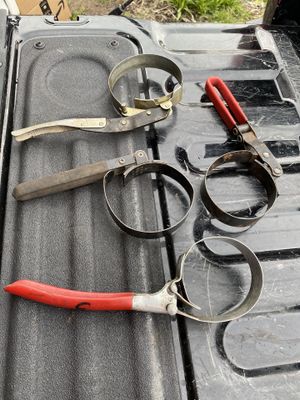 A set of rusty kitchen shears, a rusty metal ring, and a rusty metal circle are laid out on a black rubber mat. | 4 oil filter wrenches for Sale in Columbus, OH | 7d253555b717f4200c30cd9b76b63ace4d7532ac0a85f2a6c6945d0c5f5088ee | 001401448448 | 0 | 0 | 23 | 9 | 0 | 0 | |