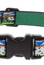 A close-up of a dog's collar with a green and black pattern. The collar has a metal buckle and two plastic clips, one on each side. The pattern features a cartoon dog character and a landscape with a house, trees, and a sky. | LupinePet Lupine 1in Ewephoria 16-28 Adj Collar | 30257ce78f03926bb2eba7f4e8d4fd3a98fd015ac0fe9ef7b89c962702d2d208 | 001401449529 | 0 | 0 | 43 | 7 | 0 | 0 | |