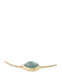 A gold necklace with a round pendant featuring a green gemstone is displayed against a white background. | Monica Vinader - Blue Siren Teardrop Bracelet - Lyst | 663d2f1f76135a3e000d7a48c382f9d5fcb95f01a131b89d7096df6338310bf7 | 001401449502 | 0 | 0 | 17 | 9 | 0 | 0 | |