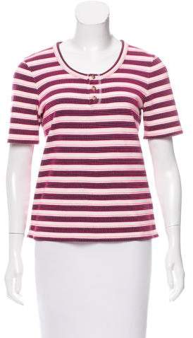 A mannequin is wearing a pink and white striped top with a white collar and a small button at the neckline. The top has short sleeves and a relaxed fit. The mannequin is also wearing a white skirt that is slightly above the knee. | A.P.C. Striped Short Sleeve Top | 3dc2cba86bcccce8765e982aaf6d1fce6eb1a86797e4c222bd9af769aa468674 | 001401451678 | 0 | 0 | 44 | 5 | 0 | 0 | |