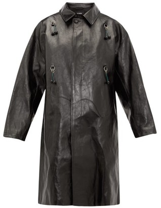 A black leather jacket with silver zippers and buttons, and a black collar is displayed against a white background. | Raf Simons Oversized Ring-embellished Leather Coat - Womens - Black | faab23e1c1b537f500adcb4079e3b79ef7af902db9fb834aa50811863b5a93c4 | 001401452818 | 0 | 0 | 19 | 10 | 0 | 0 | |
