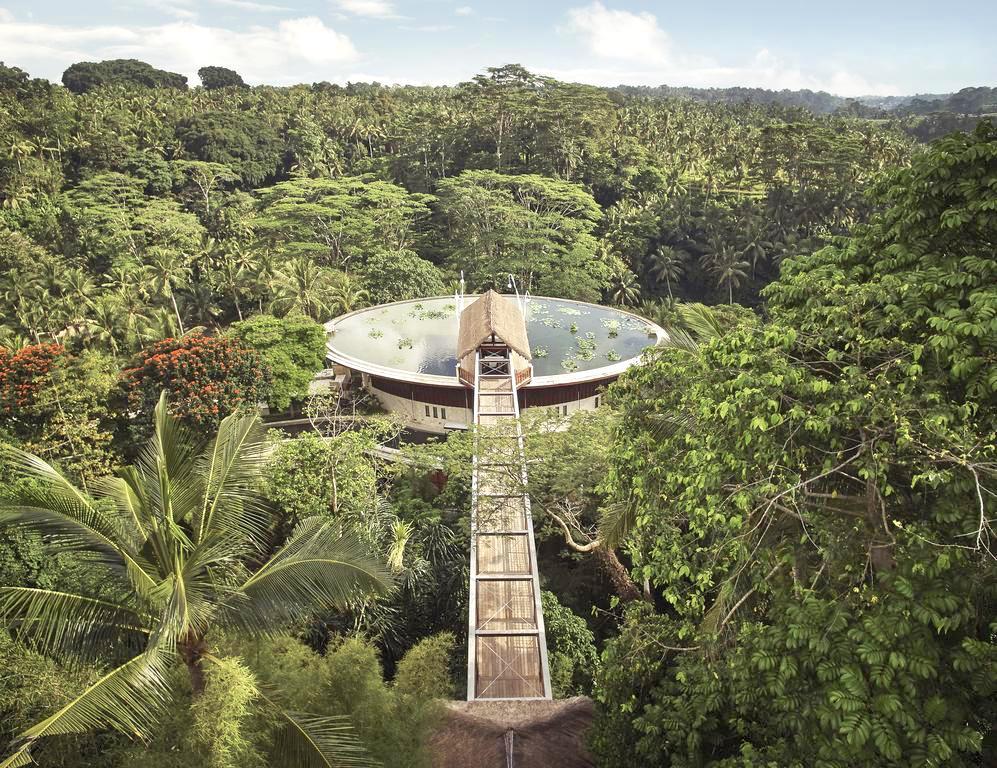 Aerial view of a modern, circular treehouse with a glass bottom, surrounded by lush greenery and trees in a dense jungle. | Four Seasons Resort Bali at Sayan | 94df1d0ad95d467e7a907e04b75e5160fb031fceae9fceb5bfb25d3f4ec05d68 | 001401453909 | 0 | 0 | 21 | 6 | 0 | 0 | |