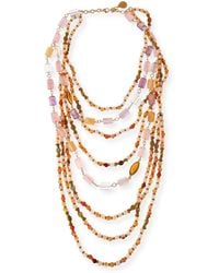 A close-up image of a multi-strand necklace with a variety of beads in different colors and shapes. The beads are predominantly in shades of pink, orange, and yellow, with some white and clear beads. The necklace is displayed against a white background, and the beads are arranged in a way that creates a layered effect. | Devon Leigh - Beaded Quartz - Lyst | 8bff0bc8c6126760885c098e5084b994c41a697fc1a7de4e2d69f98721520cfb | 001401454298 | 0 | 0 | 55 | 7 | 0 | 0 | |