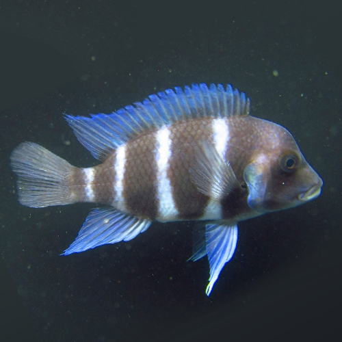 A small striped fish with blue and white stripes and a blue tail fin is swimming in the ocean. | Frontosa Cichlids | 42229beeff2ac13efd2429b17c537b849bfe75a80ce0957e906ac7042427c826 | 001401454238 | 0 | 0 | 19 | 2 | 0 | 0 | |
