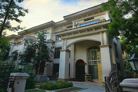 A two-story house with a beige facade and a brown roof. The house has a large arched doorway with a glass window, flanked by two smaller windows. Above the doorway, there is a balcony with a railing. The house is surrounded by lush greenery, including a large tree to the left and a smaller tree to the right. There is a... | \xe7\x9b\x98\xe5\xb1\xb1\xe6\xb0\x91\xe5\xae\xbf - Tianjin - Villa | 5f1a357d3e2ca8d1b447bbefa27c0143c70547b734e596e4c0a0bd3fc1b1256c | 001401454498 | 0 | 0 | 79 | 5 | 0 | 0 | |