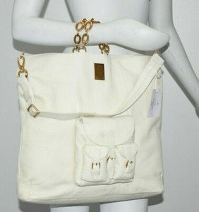 A white handbag with a gold chain and a small gold tag is displayed on a mannequin. The bag has a front pocket with a zipper and a smaller pocket with a gold zipper pull. The mannequin is wearing a white shirt and has a white arm. | $2300 NEW Bvlgari ROSSANA LARGE Wrinkled Leather Dusty White Gold Shoulder Bag | 5312a0aa3d9b100b06c46809698dc32a8a0b8c7708caa597a338901643098d06 | 001401454528 | 0 | 0 | 47 | 12 | 0 | 0 | |
