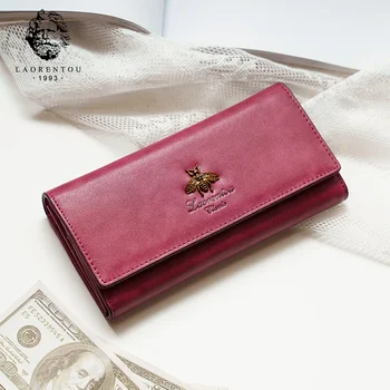 A red leather wallet with a bee logo on the front is placed on a white surface. The wallet is closed, and there is a white cloth partially covering it. In the background, there is a blurred image of a book with the title 'LAURENTTOUR' and a logo on the spine. | LAORENTOU Women Bifold Wallets Cow Leather Wallet Fashion Lady Wallet Stylish Long Clutch Bag for Women Card Holder Clutch Purse vintage handmade natural cow leather women s large burgundy wallet card case retro long wallet phone holder ladies clutch purse | a80ec6dd8ef6193f756f1bac03952fd68d8fd1b919d2765bf04ce7ef9f344d82 | 001401454657 | 0 | 0 | 51 | 40 | 0 | 0 | |