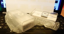 A white Apple iPod Classic is encased in a clear plastic bag, sitting on a black laptop keyboard. The bag is partially open, revealing the iPod's design and the Apple logo. The laptop screen is visible in the background, showing a blurred image. | 2 Apple Ipod Shuffle Silver 2nd Generation 1 gb A1204 Factory Sealed His & Hers | 5ea85dbe55e247599a17cf24a9dcc07c211b56dc3206c2ea55e85182c610ae43 | 001401455946 | 0 | 0 | 43 | 15 | 0 | 0 | |