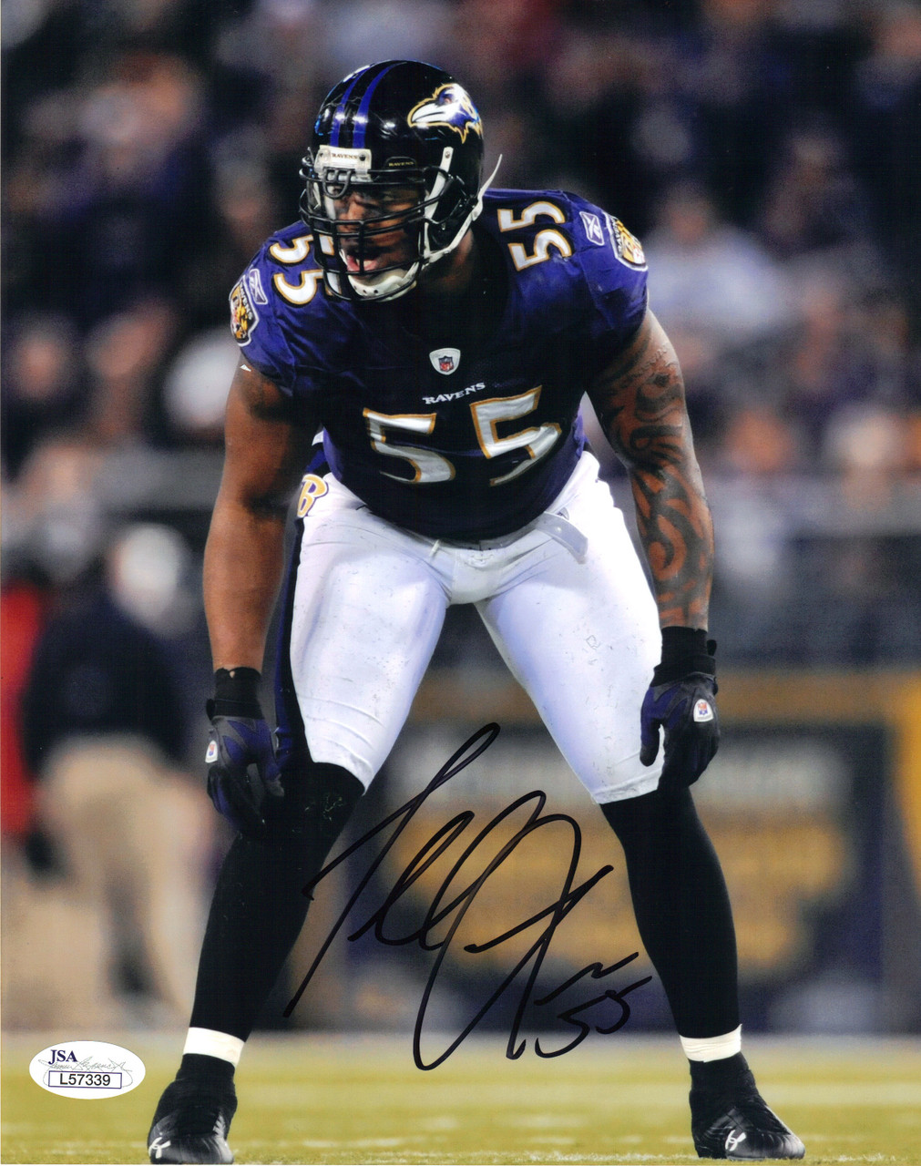 A signed photograph of a football player in a purple jersey with the number 55, wearing a helmet and gloves, standing on a field with a crowd in the background. | terrell suggs autograph jersey | 53c5ed306bfd868a442af2256b89ec0ca9484ed853eec529312027ffd159d8ff | 001401456767 | 0 | 0 | 30 | 4 | 0 | 0 | |