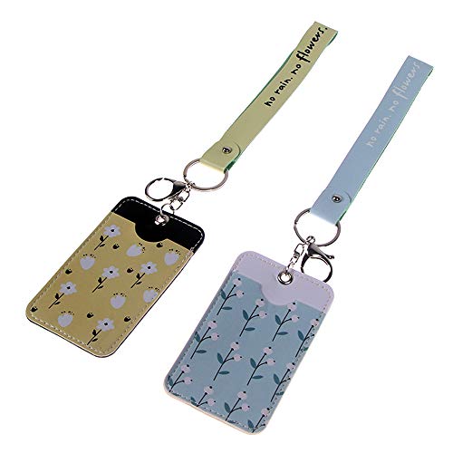 Two keychains with attached card holders are displayed. The left keychain has a black card holder with a yellow and white floral pattern, and the right keychain has a blue card holder with a blue and white floral pattern. Both card holders have a silver ring at the top. | UTENEW Set of 2 PU Leather Badge Holder Vertical ID Credit Card Holder, Keychain Holder, Wide Wrist Strap/Lanyard, for Bus Card, Metro Pass, Employee Card, School ID () | 035c4b743975f2d90e0f20a6a43141cd61aa1ad207e139824e4a9ffeaa014db1 | 001401456691 | 0 | 0 | 49 | 28 | 0 | 0 | |