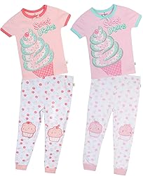 A pair of children's pajamas with a pink top and white pants featuring a strawberry ice cream design on the left leg and a cupcake design on the right leg. The top has a 'Sweet Dreams' slogan and the pants have a 'Sweet Dreams' tag. | Duck Duck Goose 'Infant & Toddler Girls 4-Piece | 8ac00b65fd2bc752cff25f4062225cf6fd84bac99f08fa855d35b7dff37e5d68 | 001401456814 | 0 | 0 | 45 | 8 | 0 | 0 | |