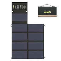A black solar panel with a white logo on the top left corner is displayed against a white background. The solar panel has a black frame and is divided into multiple panels. Next to it, there is a black carrying case with a white logo on the top right corner and a white handle. | Suaoki 60W Solar Charger (5V USB + 18V DC) Dual Output Sunpower Mono-Crystalline Portable Folding Solar Panel with Battery Clamps and Car Charger for Laptop Tablet GPS Cellphone Car | 555d47aa54c135aaaede1a3ded29ff9acf8198d04886441fe49ea3d2623fae9a | 001401457021 | 0 | 0 | 54 | 29 | 0 | 0 | |
