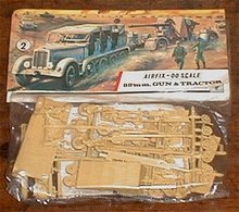 A vintage toy truck and tractor set is displayed on a wooden surface. The truck is a large, detailed model with a prominent grille and headlights, and it is accompanied by a smaller tractor. Both vehicles are made of wood and are painted in a realistic style. The set is packaged in a box with a label that reads 'AIRFIX-60 SCALE' and 'BENZ-60 GUN & TRACTOR'. The box is open, revealing the toys inside, and the packaging is partially torn, suggesting that the toys have been played with or assembled. | 88mm Flak Gun and Tractor | Model Military Artillery & Accessories | e5d205074996f6f28ce7b8f009793ad43dc971c400952ea84f9d0adaa749c156 | 001401457178 | 0 | 0 | 90 | 11 | 0 | 0 | |
