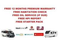 A promotional poster with a white background featuring a white van on the left side and a red and white logo on the right side. The text reads 'FREE 12 MONTHS PREMIUM WARRANTY FREE HABITATION CHECK FREE OIL SERVICE IF DUE FREE HPI REPORT FREE STARTER PACK' with various logos and text below the main text. | Hobby Optima T70 GE FIAT 4 BERTH 4 TRAVEL SEAT MOTORHOME | cb92d2de4c3c937181361a2ebec4682d94d592fabd8725e270b28a8380c7c93b | 001401457189 | 0 | 0 | 56 | 11 | 0 | 0 | |