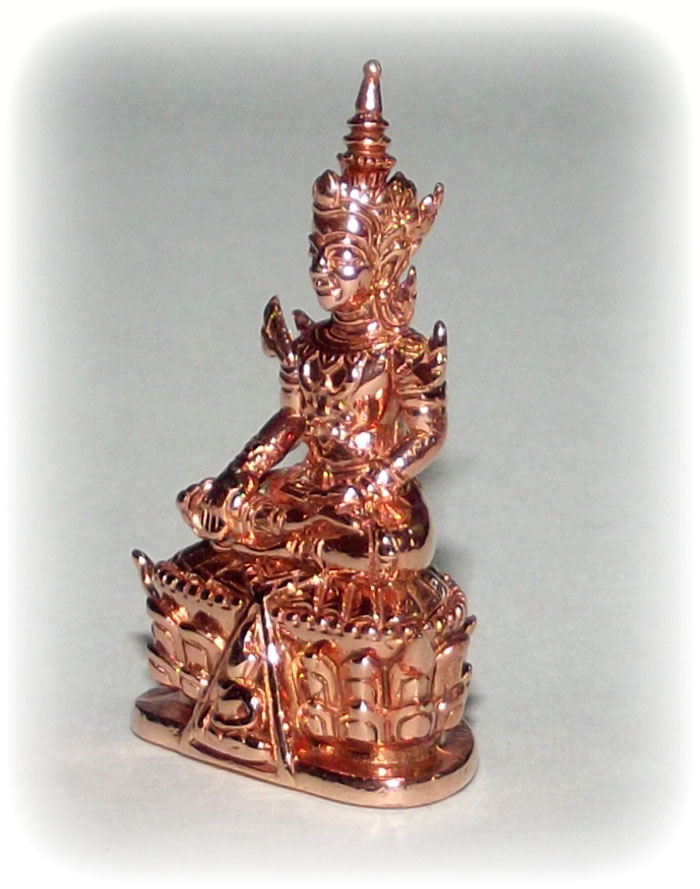 A close-up image of a small, detailed figurine of a person sitting in a meditative pose. The figurine is made of a shiny, metallic material, possibly copper, and features intricate designs and patterns. The person is depicted with a serene expression, wearing a traditional headdress, and is seated on a decorative platform with a small boat-like structure in front of them. The background is a plain, light color, which highlights the figurine. | Pra Krin Pim Lek in pink gold from Wat nang Paya temple | 2b5b7c9a3c54d7a3775a332d1f363c11e8f85e510afc64dad922923120c8edf7 | 001401457205 | 0 | 0 | 72 | 12 | 0 | 0 | |