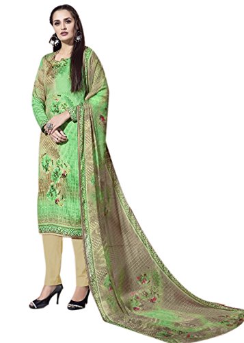 A woman is wearing a green traditional outfit with a long, flowing shawl draped over her shoulders. The outfit has intricate gold embroidery and a matching dupatta. She is accessorized with a pair of earrings and a ring on her left hand. | Rosaniya Fine Quality Cotton Un stitched Self Digital Printed salwar suit for... | cc414f98d7494f29fe633434bf41a643f3689c0dcaf409f46c85d74faf174005 | 001401457615 | 0 | 0 | 42 | 12 | 0 | 0 | |