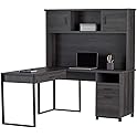 A sleek modern black office desk with a flat top and a set of drawers, featuring a laptop, a mouse, a keyboard, a cup holder with pens, and a small potted plant on top. | Realspace DeJori 59"W L-Shaped Desk With Hutch | 3c5d7c889c657354356fd2a6d611801444e741979fa4b9f33b53024802cc2aec | 001401457553 | 0 | 0 | 34 | 7 | 0 | 0 | |