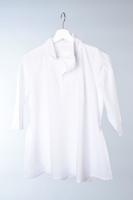 A white shirt with a relaxed fit and a round neckline is hanging on a hanger against a light blue background. The shirt has short sleeves and a buttoned placket down the front. | Labo Art Maglia Poeta Clara Shirt | d38a9741ea98e2846ad50e45e6c794dc647670bcc73c1e114251ff487a2ef896 | 001401457816 | 0 | 0 | 33 | 6 | 0 | 0 | |