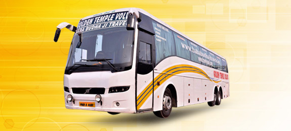 A white bus with yellow and black stripes is parked on a road. The bus has a sign on the front that reads 'GOLDEN TEMPLE VOL. 1' and 'JALANDHAR JN. TO DELHI JN. VIA AMRITSAR JN.' The bus is positioned on a yellow background with various abstract shapes and lines around it. | bus image0 | 193999b6483668fd6a3a13e6441a2bfb401f72f683959c7780820b299e499410 | 001401457712 | 0 | 0 | 52 | 2 | 0 | 0 | |