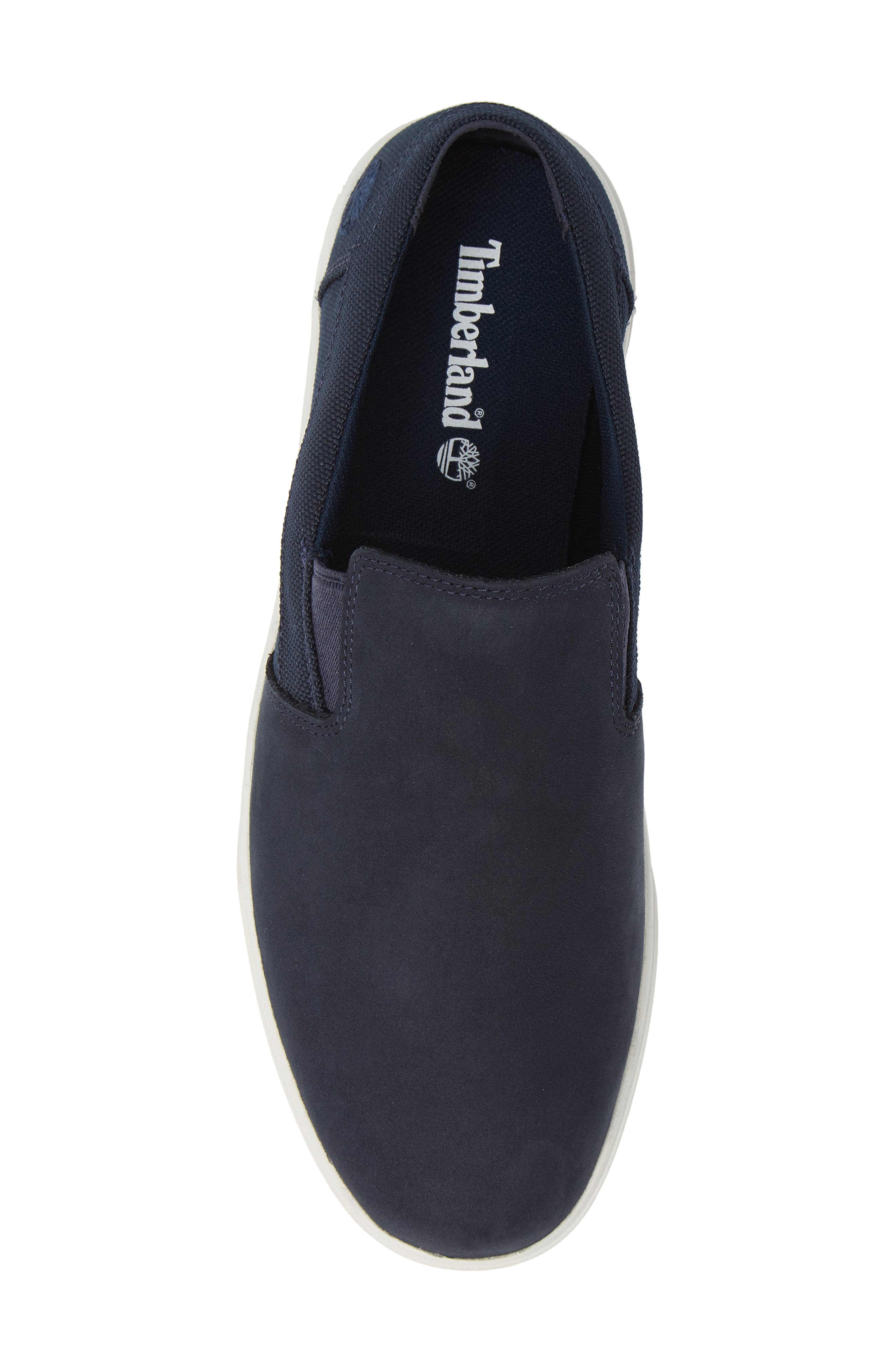 A black slip-on shoe with a smooth surface and a simple design. The shoe has a curved toe cap and a flat sole. The brand 'Ecco' is embossed on the side of the shoe. | TIMBERLAND,\n Groveton Slip-On Sneaker,\n Alternate thumbnail 5, color,\n 410 | ee14cc87b1d450f1e37572ccb454cb2b198c952019d7b92bea8b3a111574fda0 | 001401457857 | 0 | 0 | 34 | 9 | 0 | 0 | |