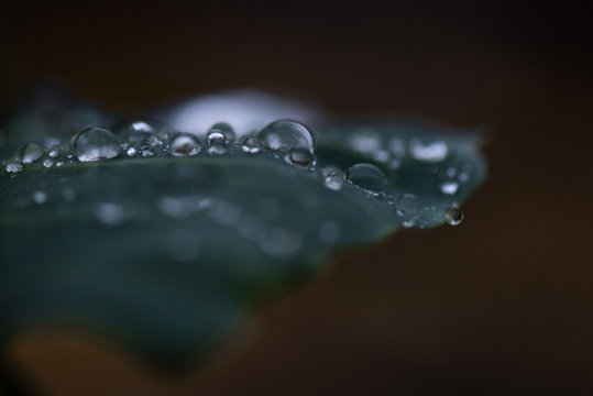 A close-up of a green leaf covered in water droplets. The droplets vary in size and are scattered across the leaf's surface. The background is dark, and the focus is on the leaf, which is the main subject of the image. | Close-up Of Water Drops On Plant Against Black Background | b58e519a1d0d63b30bfc5379fdb7512b08f3c54dd94297153de111173f4e553c | 001401458532 | 0 | 0 | 41 | 9 | 0 | 0 | |