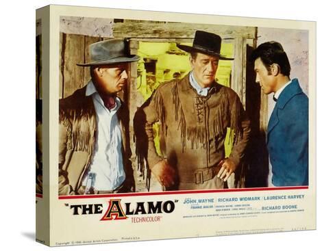 A vintage movie poster featuring three actors in a Western setting. The poster has a retro aesthetic with a color palette that includes shades of blue, green, and brown. The actors are dressed in period attire, with one wearing a cowboy hat and a fringed leather jacket, another in a suit with a bow tie, and the third in a suit with a tie. The poster is titled 'The Alamo' and includes a list of actors and crew members at the bottom. | The Alamo, 1960 Art Print | 1cf4b7010650e6bc97c612c6d9e1ff09acbebe04e5c08982e55379bcdcd9edac | 001401458767 | 0 | 0 | 82 | 5 | 0 | 0 | |