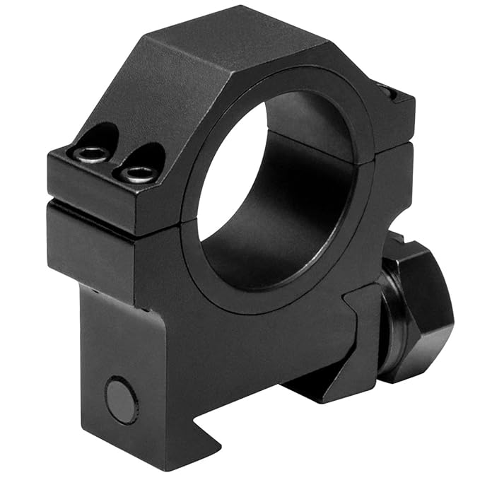 A black metal ring sight with a circular opening and two small holes on the left side is attached to a black metal base with a circular opening. The base has a small black knob on the bottom left side. | NcStar 30mm//1/" Medium Scope Rings Weaver Aluminum Black RB26 | 26b71295204632ea4ad607d4330841e9415230999e264b11f0ff80892eef492e | 001401459897 | 0 | 0 | 40 | 9 | 0 | 0 | |
