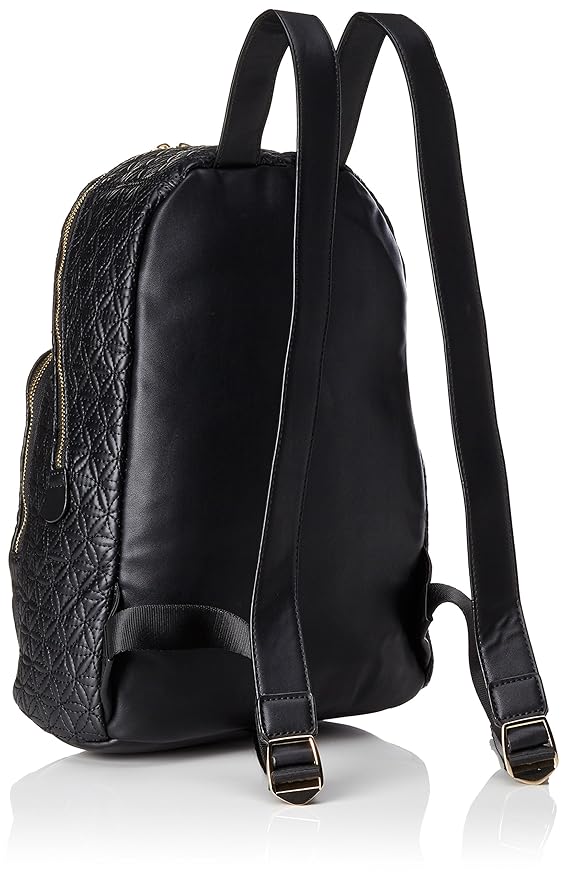 A black leather backpack with a gold buckle and a gold zipper pull is displayed against a white background. The backpack has a structured design with a front pocket and two side pockets, and it features a shoulder strap with a gold buckle. | Damen Bols_lima Lottie. 2000. U Rucksack, Schwarz (Negro), 11x34x25 cm Desigual | 5a2d482c891cb8c120ae0f716f33945e66093dabee8de0c637b9f9d9e728f28b | 001401459840 | 0 | 0 | 43 | 11 | 0 | 0 | |