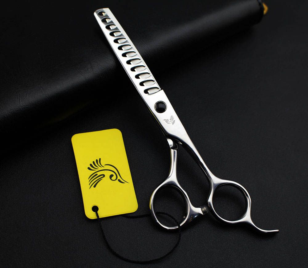 A pair of silver scissors with a black handle is lying on a black surface next to a yellow tag with a stylized bird design. | Japan 6 Inch Hot Hairdressing Scissors Professional Hair Thinning Scissors Barber Shears Equipment Salon Tools High Quality | 2c28fe4ccc57f4ba1c8001085829e59b404d4800688bdde0b9dd458435d15853 | 001401461048 | 0 | 0 | 25 | 17 | 0 | 0 | |