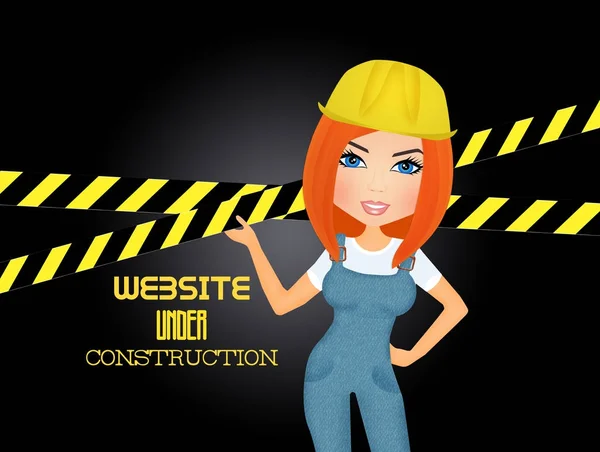 The second image shows the same animated character with the same appearance, including the red hair, blue overalls, and yellow hard hat. However, the background has been changed to a dark color with a yellow and black striped caution tape in the foreground. The text 'WEBSITE UNDER CONSTRUCTION' is now displayed in a bold, yellow font on the caution tape. The character's pose and the overall composition of the image remain the same. | illustration of Website Under Construction | d0b1667fd19766efc4ea298f7511fbc93c32d4157a553b7510308741bc45c3d8 | 001401461820 | 0 | 0 | 73 | 5 | 0 | 0 | |