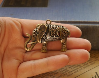 A close-up image of a person's hand holding a small, ornate elephant figurine. The elephant is made of metal and features intricate designs and patterns. The hand is positioned in the lower left corner of the image, and the elephant is centered. In the background, there is a blurred book with text visible on its pages. | LARGE 3D Retro Antique Bronze Elephant Pendant 5cm (BC773) | a57739cb2afa2de7784cdc109f1b698dba993075dbb9b6fa48f5f5415d7eb170 | 001229733313 | 0 | 0 | 56 | 9 | 0 | 0 | |