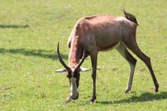 A young antelope with a short, smooth coat and a pair of long, curved horns is grazing on the grass in the African savannah. | Blesbok Stock Photo | 315cfdace93ce0bdd064a88c9fff74a99fc144d7c081a52e342f973e6317c8c8 | 001229733870 | 0 | 0 | 24 | 3 | 0 | 0 | |