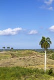 A serene landscape with a clear blue sky and a few scattered clouds. In the foreground, there is a lush green field with patches of grass and small shrubs. A solitary palm tree stands prominently on the right side of the image, its leaves gently swaying in the breeze. The background features a series of hills with a few sparse trees, creating a sense of depth and tranquility. | Typical cuban landscape Royalty Free Stock Photos | e6158f81822e5a6ce7d4fdc1a3941313a720cdd58777673ff7053165fb6c2afc | 001229733878 | 0 | 0 | 68 | 7 | 0 | 0 | |