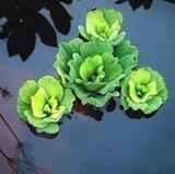 A group of green leafy plants with a central, more prominent leaf, surrounded by smaller leaves, floating on a calm body of water. The background is a gradient of blue tones, and there is a hint of a dark, possibly leafy, object on the left side. | Water Lettuce - Floating Live Pond Plants by (by Kazen Aquatic) | 5ba042ce0161381288444c27820c129f92bc877805552be8160f5fb9d6633334 | 001229718892 | 0 | 0 | 46 | 11 | 0 | 0 | |