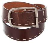 A brown leather belt with a silver buckle is displayed against a white background. The belt has a textured surface and is fastened with a silver buckle that has a circular design with a logo in the center. The buckle is attached to the belt with a metal pin. | Roberto Cavalli Leather Buckle Belt | 4152b5758eeeacb542e0797ee66cec94e5d3425945a5167ae2a69b3ac2149dee | 001229734195 | 0 | 0 | 49 | 5 | 0 | 0 | |