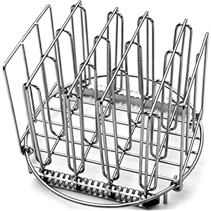 A stainless steel egg poacher with multiple compartments is displayed against a white background. The poacher has a circular shape with a raised edge and a series of vertical bars inside each compartment. The bars are evenly spaced and extend from the bottom to the top of each compartment. The poacher has a flat bottom and a curved handle on one side. | LIPAVI Sous Vide Rack Model R20, Stainless Steel | 72fce596f8c798668ac0da4d854cc00d4099fd09441c3d2cf696f41a009f0deb | 001229734460 | 0 | 0 | 62 | 8 | 0 | 0 | |