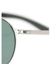 A pair of sunglasses with a reflective lens is placed on a white background. The sunglasses have a metallic frame with a hinge and a metal bar connecting the temples. The reflection on the lens shows a shadow of the frame and the white background. | Mykita Gray 'elder' Sunglasses | b2227952ab39bbf0bf2e6b1dcae299210f82a36f4dda9ba04d5b85595de9b27a | 001229734652 | 0 | 0 | 45 | 4 | 0 | 0 | |