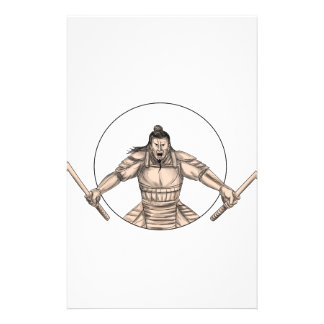 A stylized illustration of a samurai warrior in a dynamic pose, with one hand holding a katana and the other holding a naginata. The warrior is depicted in a circular frame, with a white background. The illustration has a monochromatic sepia tone, giving it an antique or historical feel. | Samurai Warrior Wielding Two Swords Tattoo Stationery | 568efe9d2400e690cd7a69a1f8842d3b77b0d9cf2a79ee1f5815d473c2c3ac03 | 001229734982 | 0 | 0 | 49 | 7 | 0 | 0 | |