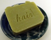 A square block of green soap with the word 'HAIR' written in cursive on its surface is placed on a blue and white patterned plate. The soap has a smooth texture and appears to be a natural green color. | Key Lime Eucalyptus Shampoo Bar - Vegan Shampoo Bar with French Green Clay | 8ed9b5c365971b8a24fdb595fd8d360f54e1103f6cf8c7a2a0c4c2352464a4cd | 001229735193 | 0 | 0 | 39 | 13 | 0 | 0 | |